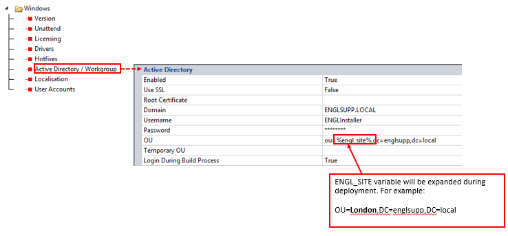 In this example each site is on a different subnet and has a different imaging server. The company wishes to set the following settings dynamically based on the location of the machine being deployed: