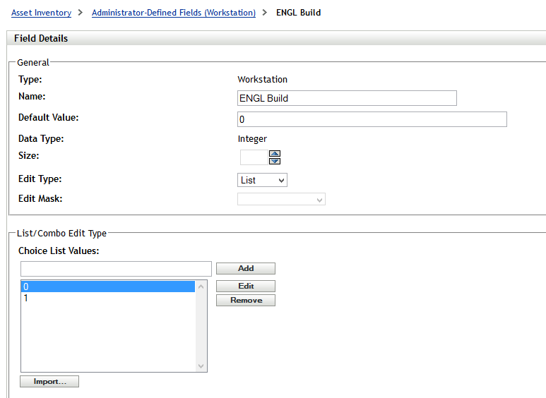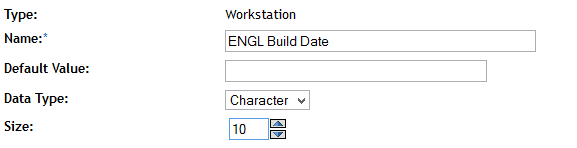 - Create a field called ENGL Build, data type integer, with a default value of 0 (workstations built using an ENGL deployment will have a value of 1)