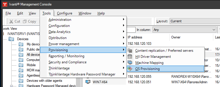 - Select Tools > Provisioning > OS Provisioning.