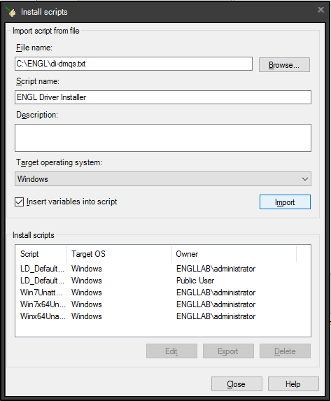 - Set the Script name to “ENGL Driver Installer”.