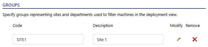 Monitor groups can be defined to represent sites or departments and used to filter deployments view in the Monitor Service. Once a machine has been deployed using a group code, that group will be permanently stored with that machine's deployment.